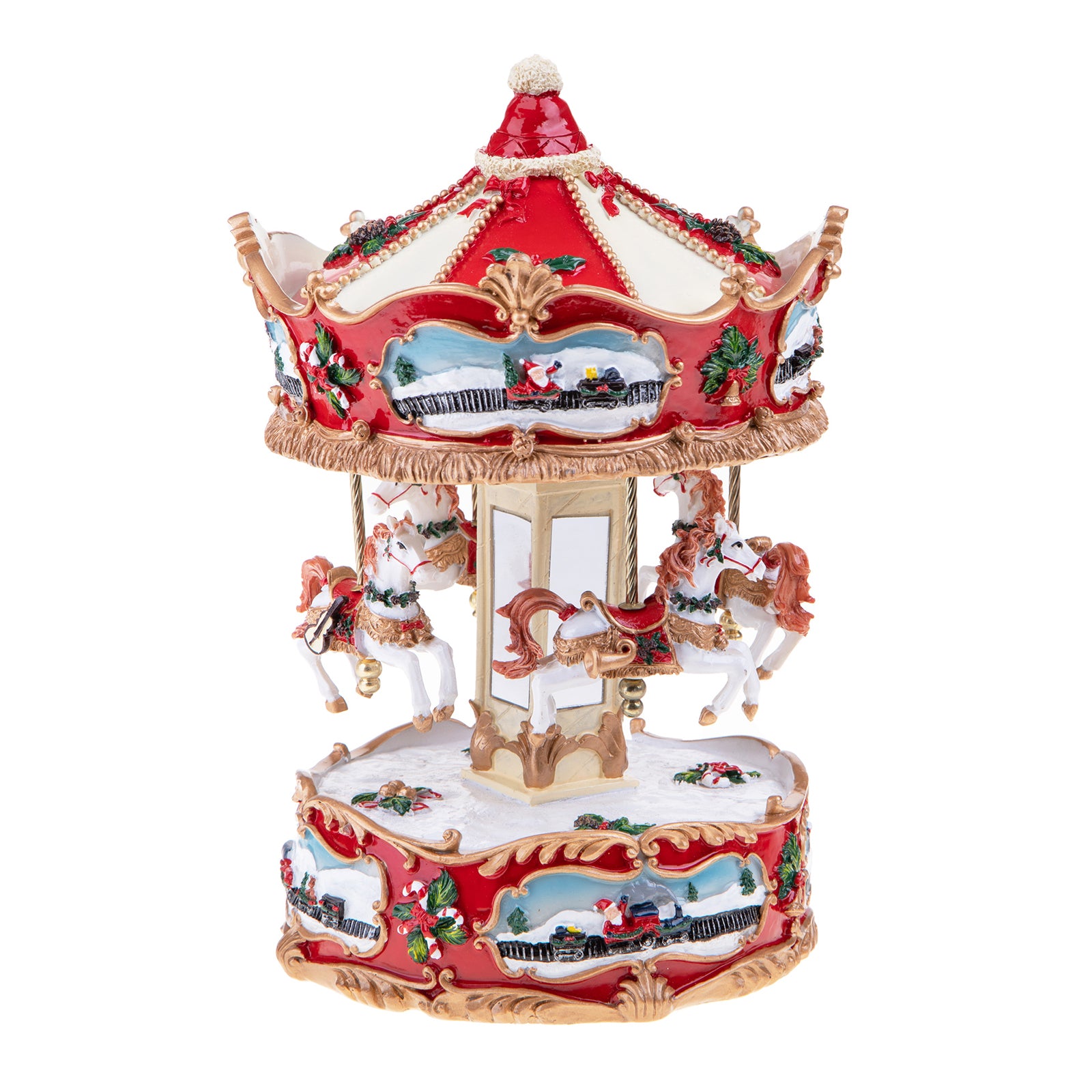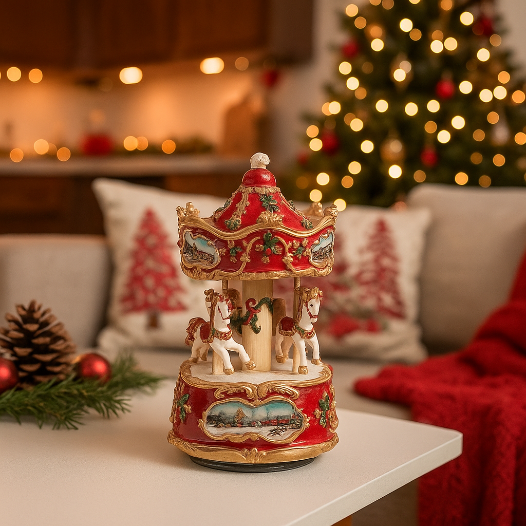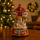 Statuetta giostra con carillon in resina per decorazioni natalizie