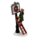 Statuetta natalizia Artista sul cartello decorazione per presepe villaggio di Natale in poliresina