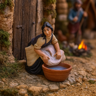 Statuetta per presepe natalizio donna che lava i panni h 10 cm