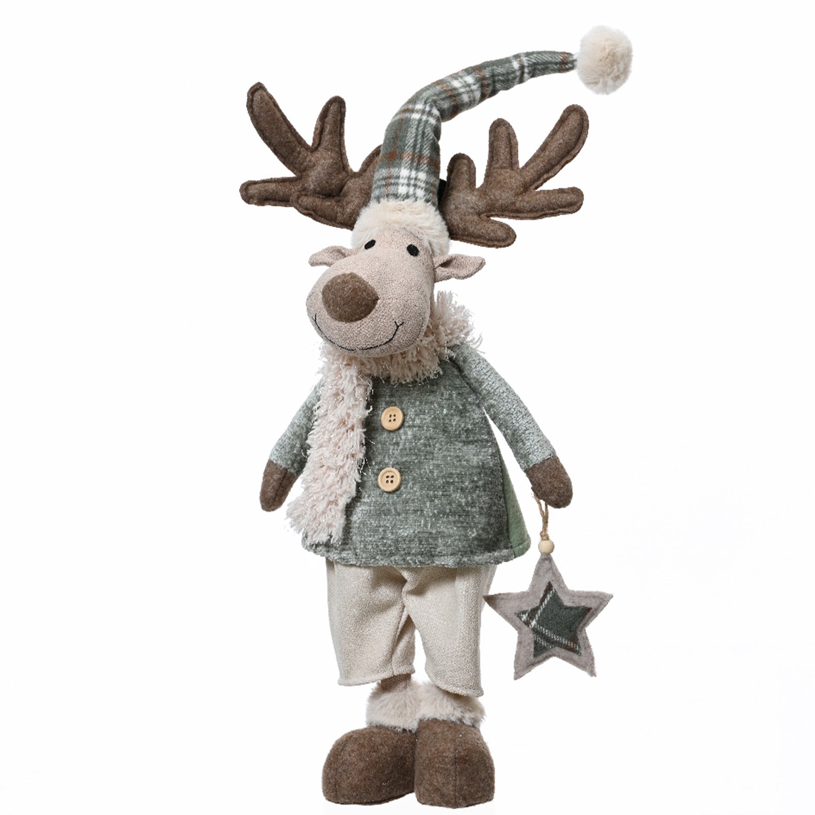 Statuetta pupazzo Renna con pelliccia e stella in poliestere decorazione da 82 cm