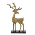 Porta un tocco di lusso e stile alla tua decorazione natalizia con questa raffinata statuetta di renna oro con base nera.