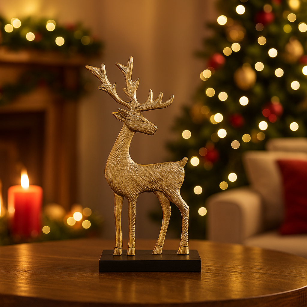 - Design Elegante: La statuetta di renna è realizzata in oro brillante, mentre la base nera conferisce un contrasto elegante, esaltando il design festivo e raffinato.