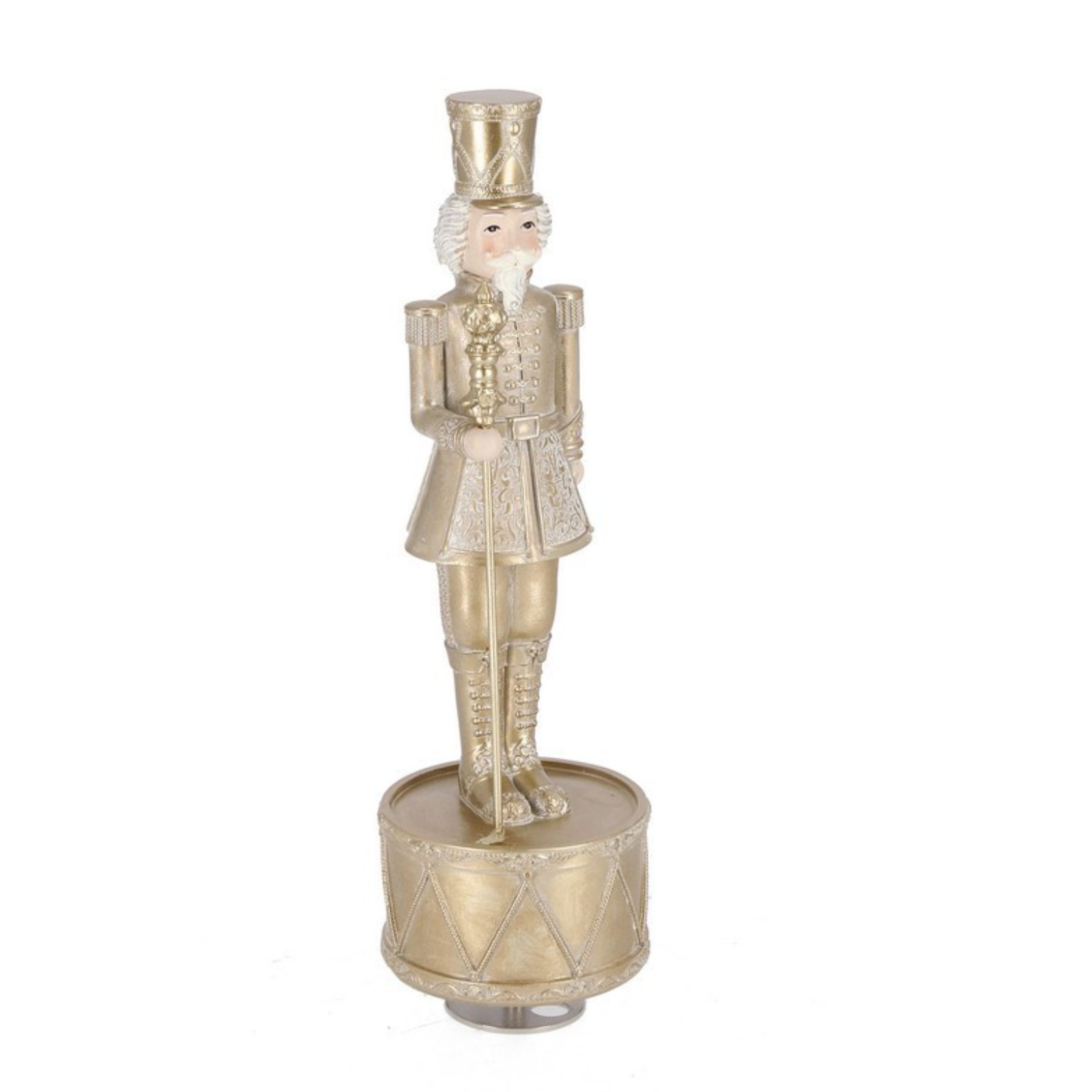 Statuetta soldato schiaccianoci con trombetta in resina per decorazioni natalizie