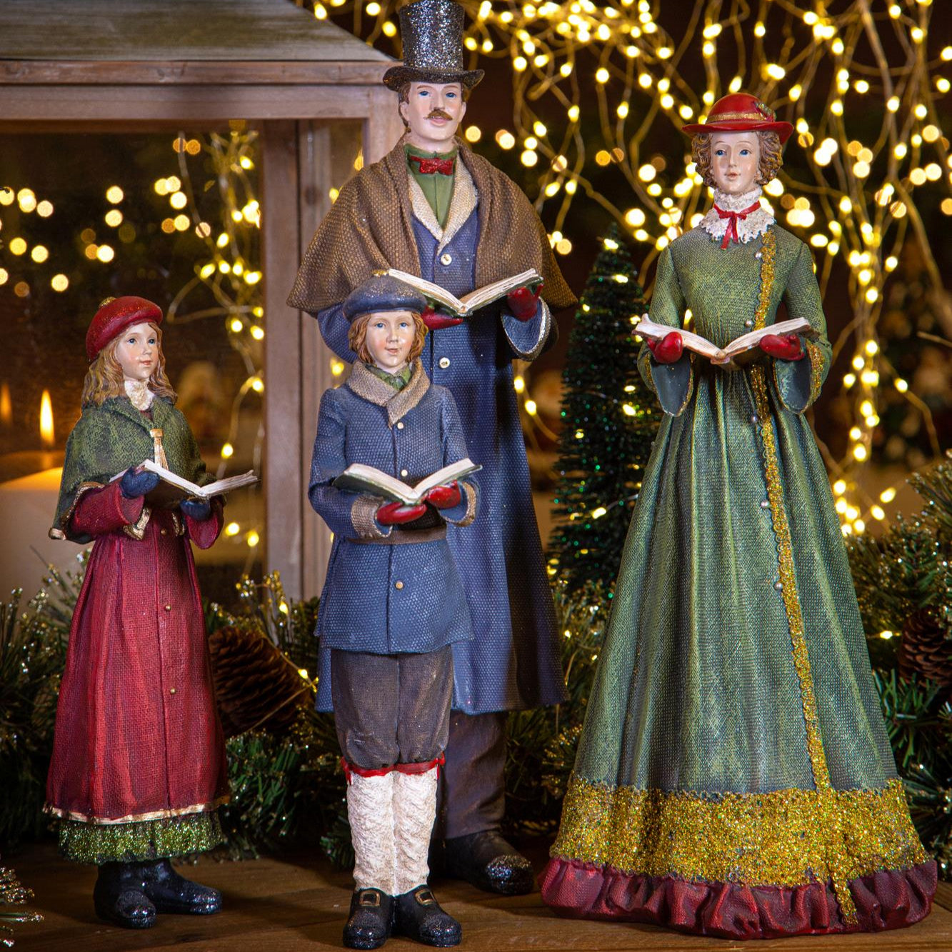 Realizzata con grande attenzione ai dettagli, raffigura una famiglia di cantori vestita con abiti in colori natalizi vivaci e raffinati, perfetta per creare un punto focale accogliente nella tua casa.