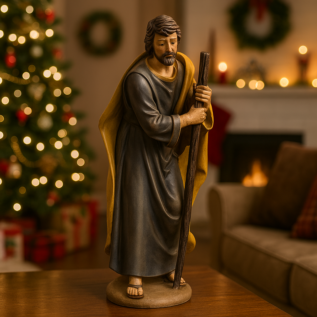 Porta autenticità e spiritualità al tuo presepe con la statuina di San Giuseppe, un elemento essenziale per valorizzare la magia del Natale.