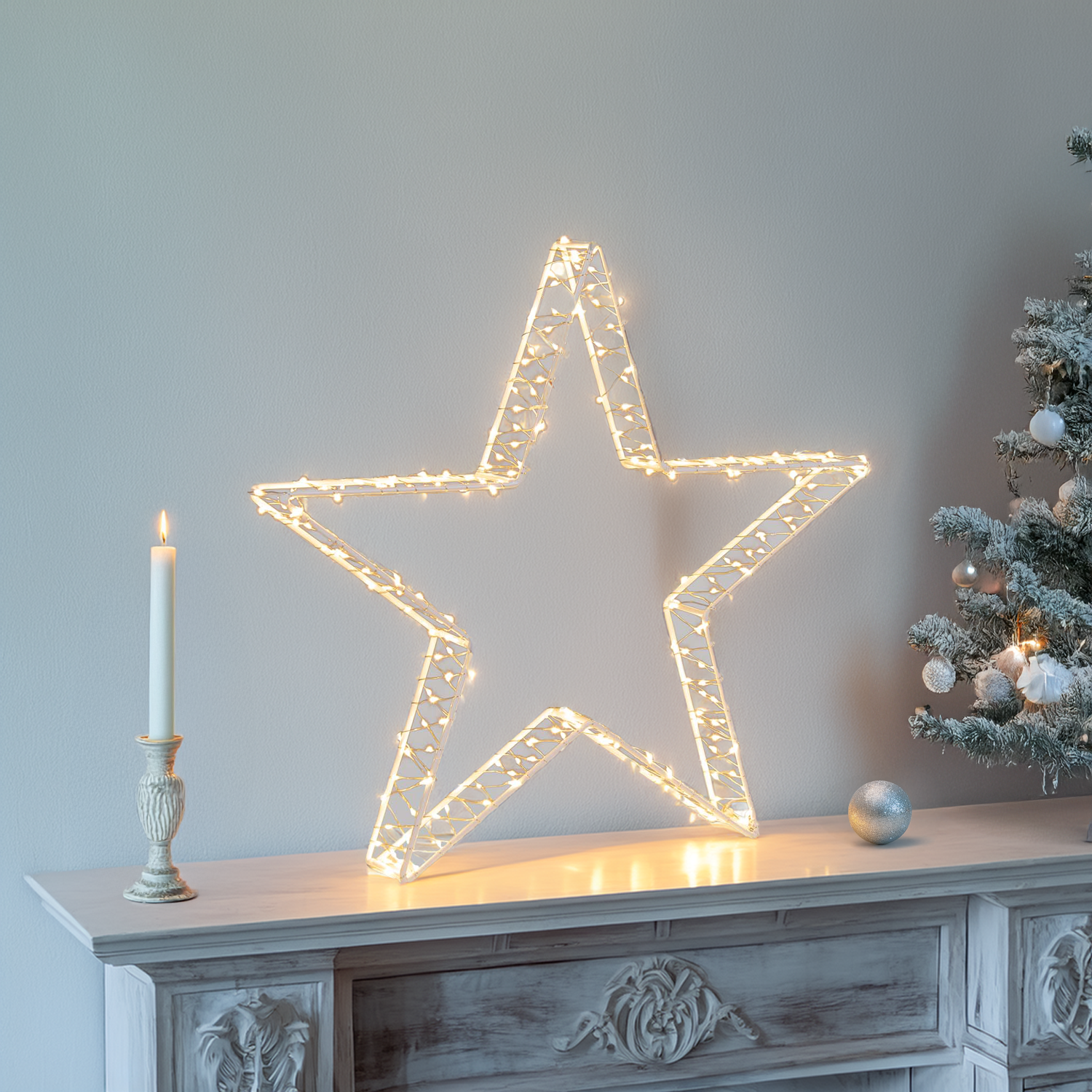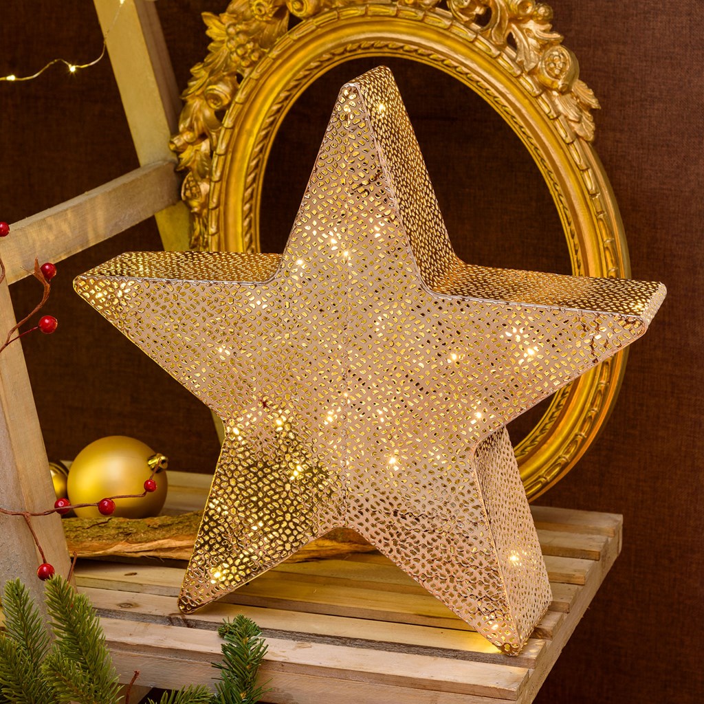 Stella a 5 punte color champagne con led bianco caldo decorazione natalizia