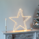 L'alimentazione avviene tramite un trasformatore in bassa tensione (incluso) con cavo trasparente lungo 4 metri, che offre grande flessibilità di posizionamento permettendo di installare la stella anche lontano dalle prese elettriche. La decorazione può essere sia appoggiata che appesa (utilizzando un cordino non incluso), adattandosi a diverse esigenze di installazione.