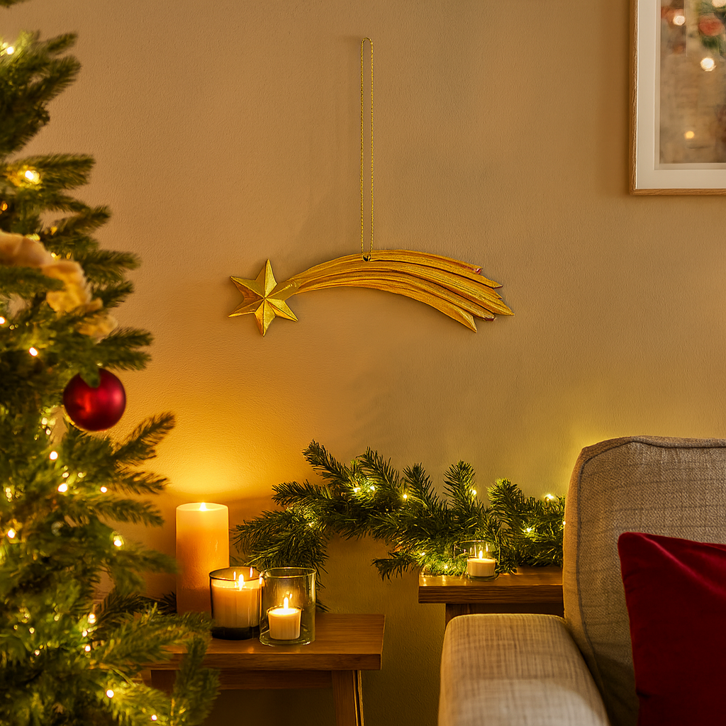 Illumina il tuo presepe con la magia senza tempo della Stella Cometa in resina dorata.