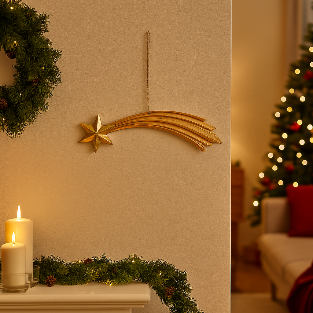 Realizzata in resistente resina e rifinita con una preziosa doratura, la stella si distingue per i suoi dettagli curati e la brillantezza che cattura lo sguardo.