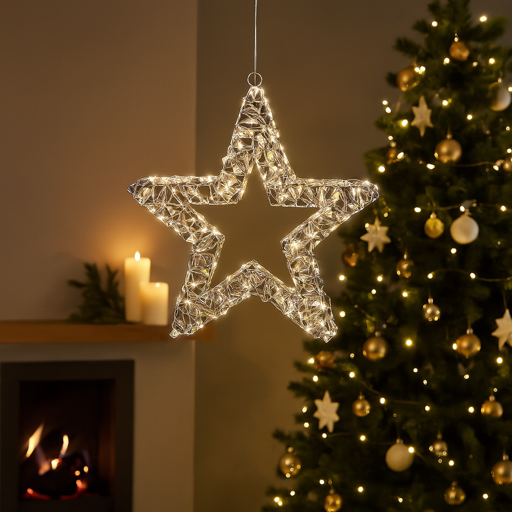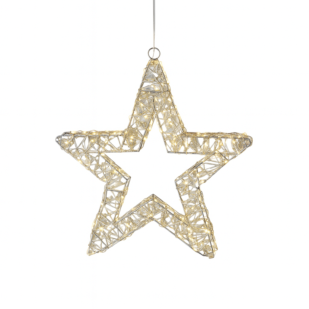 Dona un tocco di magia e luminosità alle tue feste con questa elegante stella luminosa a LED, perfetta per decorare ambienti interni ed esterni. La luce calda crea un’atmosfera accogliente e festosa, ideale per finestre, balconi, ingressi o salotti.