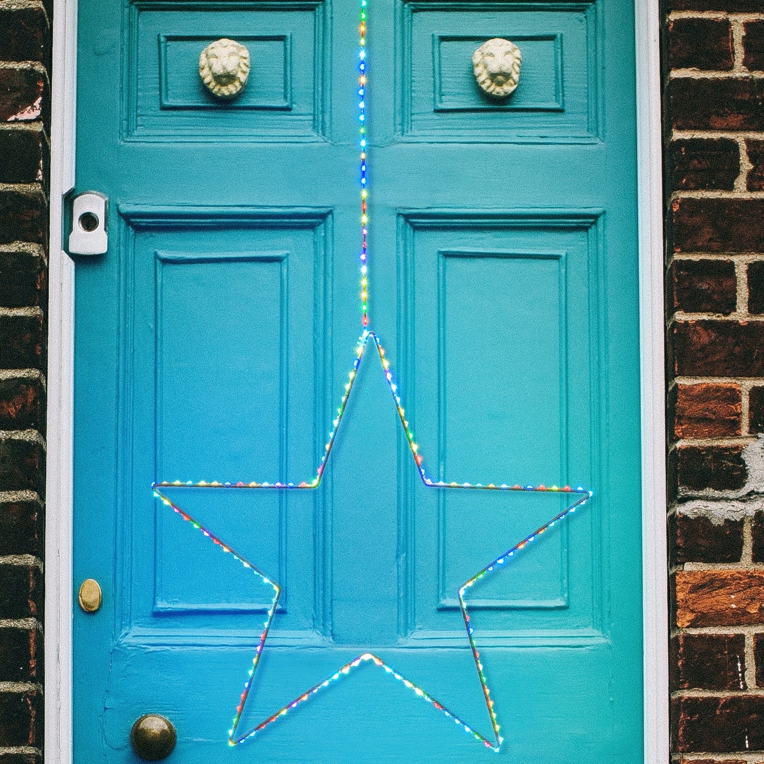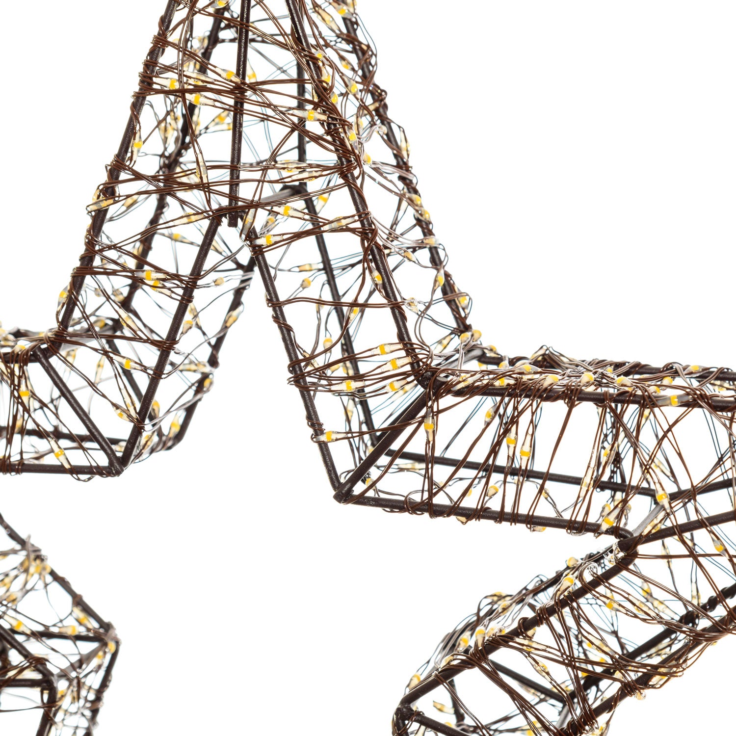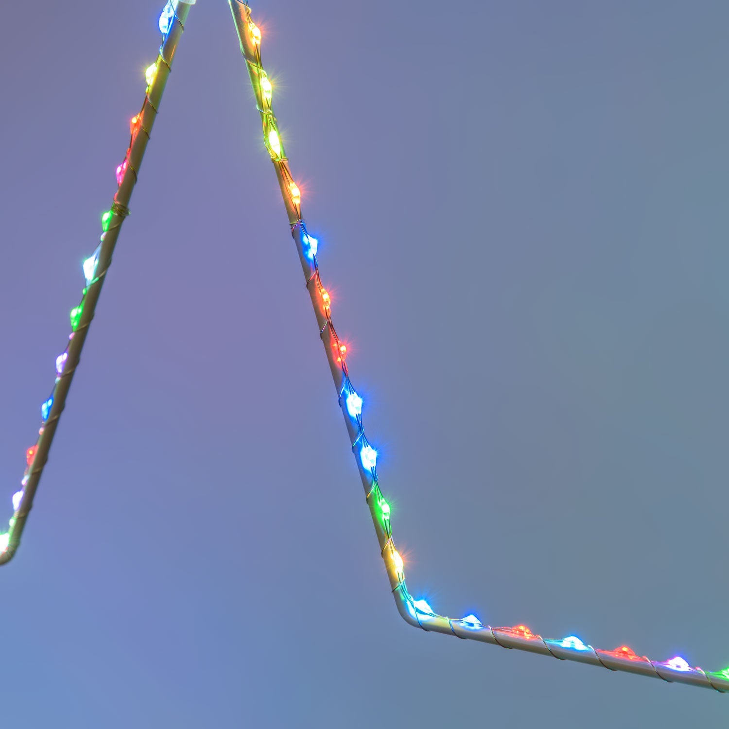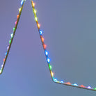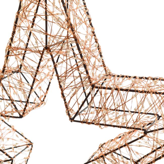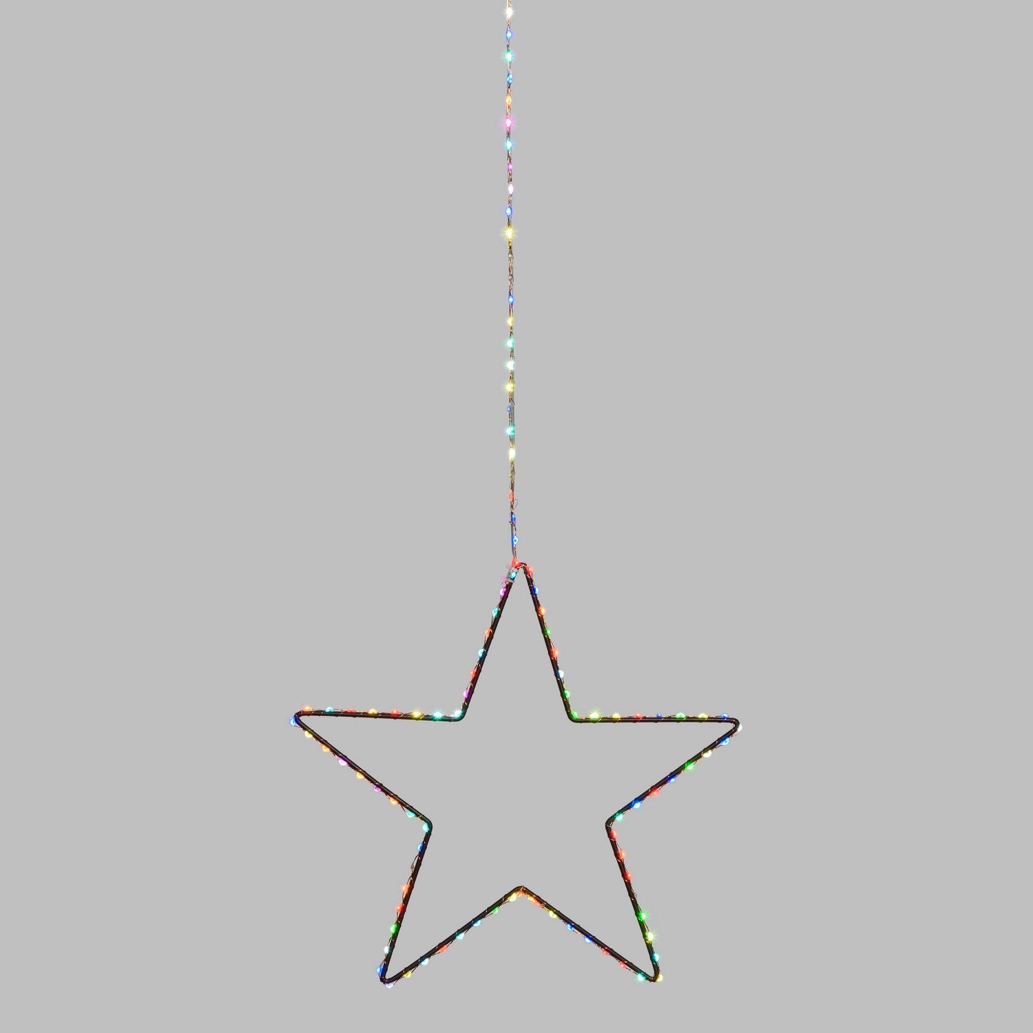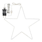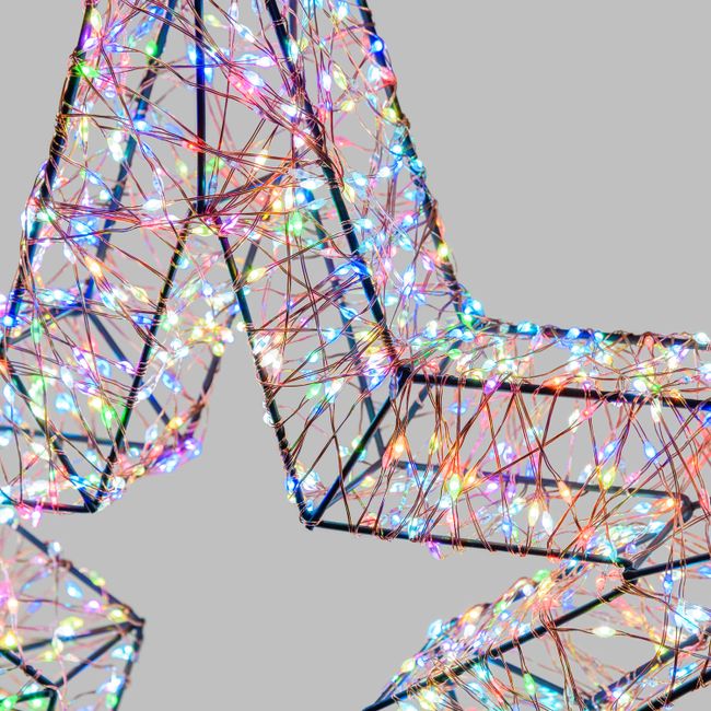 La sagoma della stella è in metallo bianco, è rivestita di un filo di luci micro led RGB dall'effetto Multiflash automatico e non modificabile.