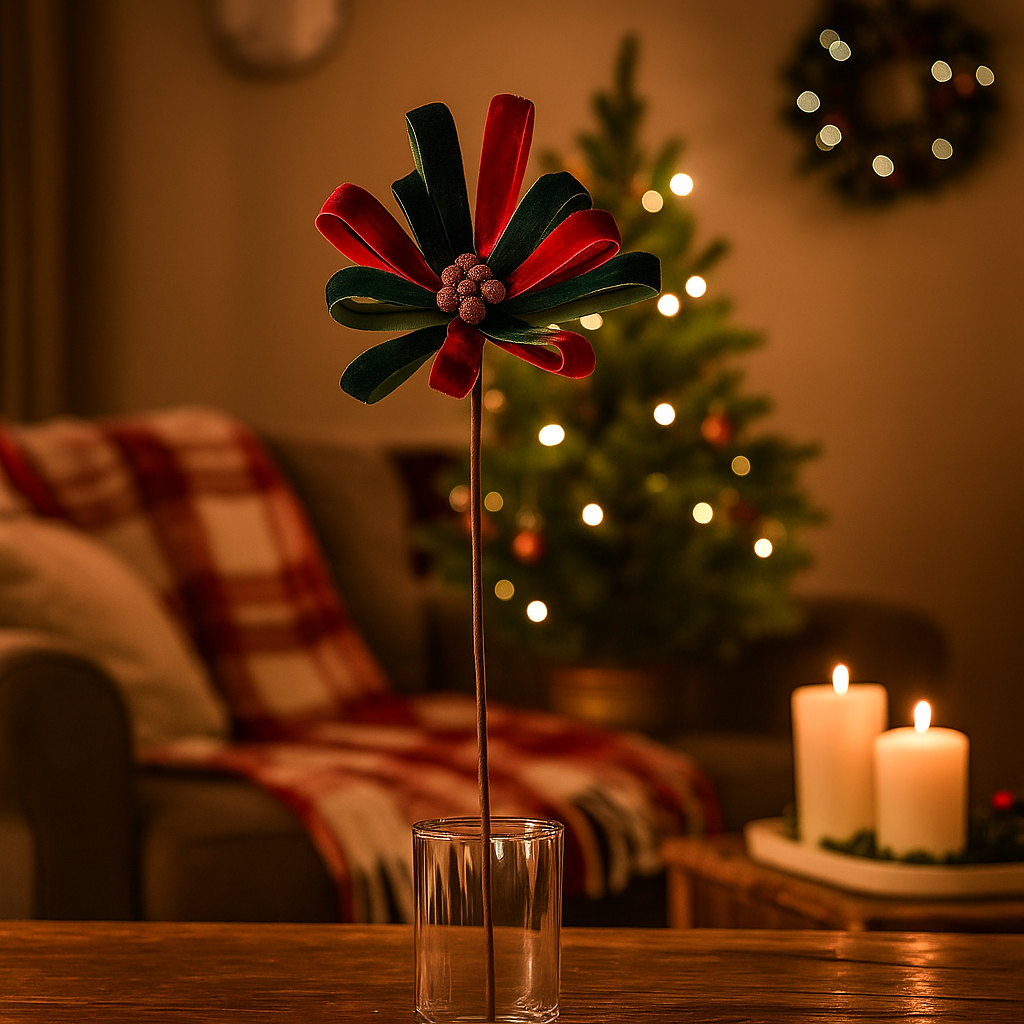 L'effetto visivo è di grande impatto, ma senza risultare eccessivo, rendendo questo stelo perfetto per centrotavola, composizioni floreali, ghirlande o decorazioni di alberi di Natale.