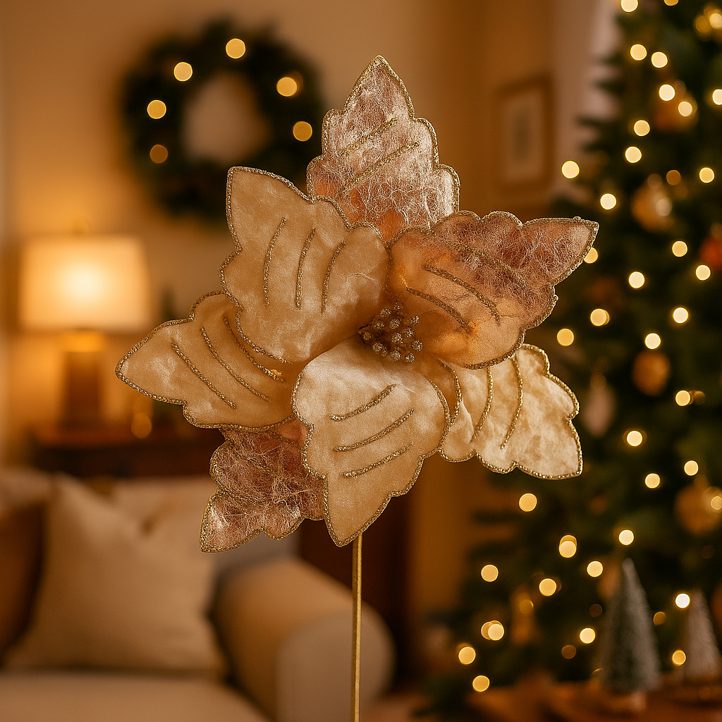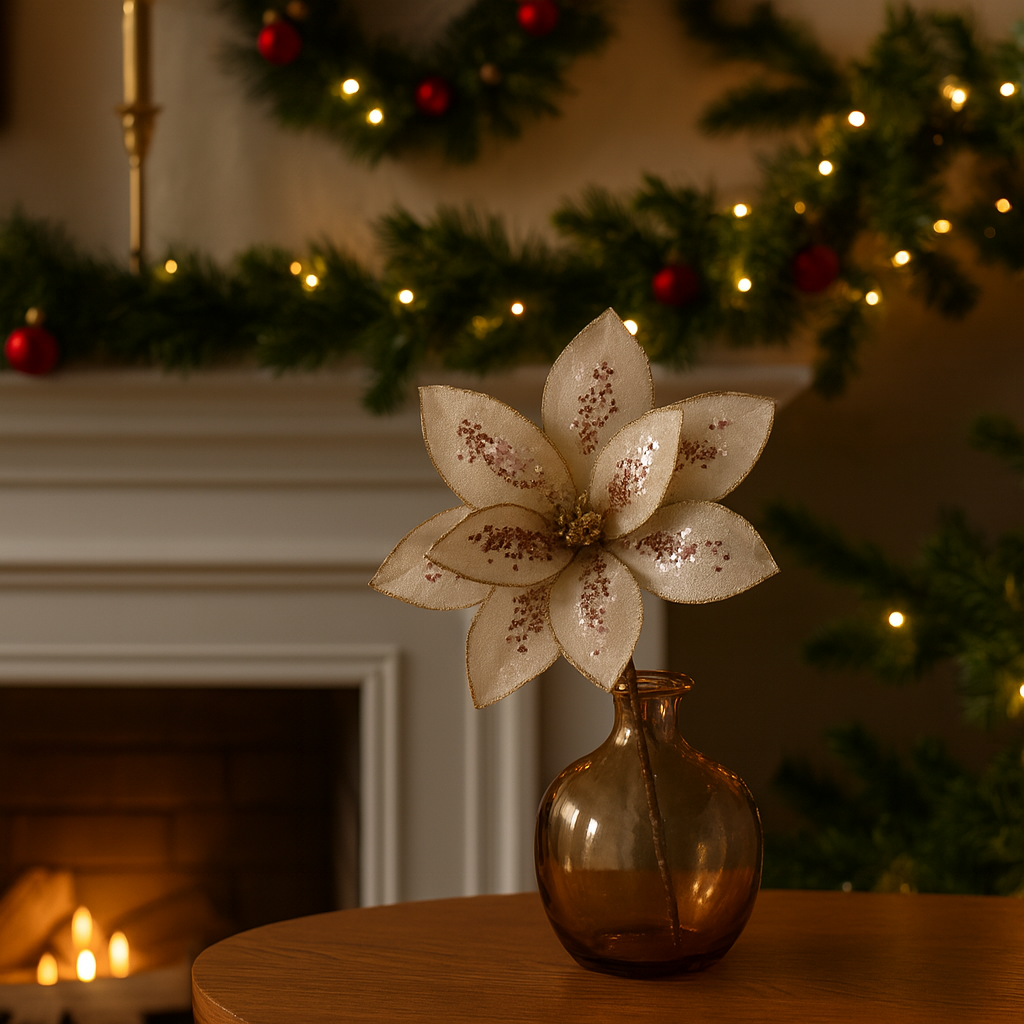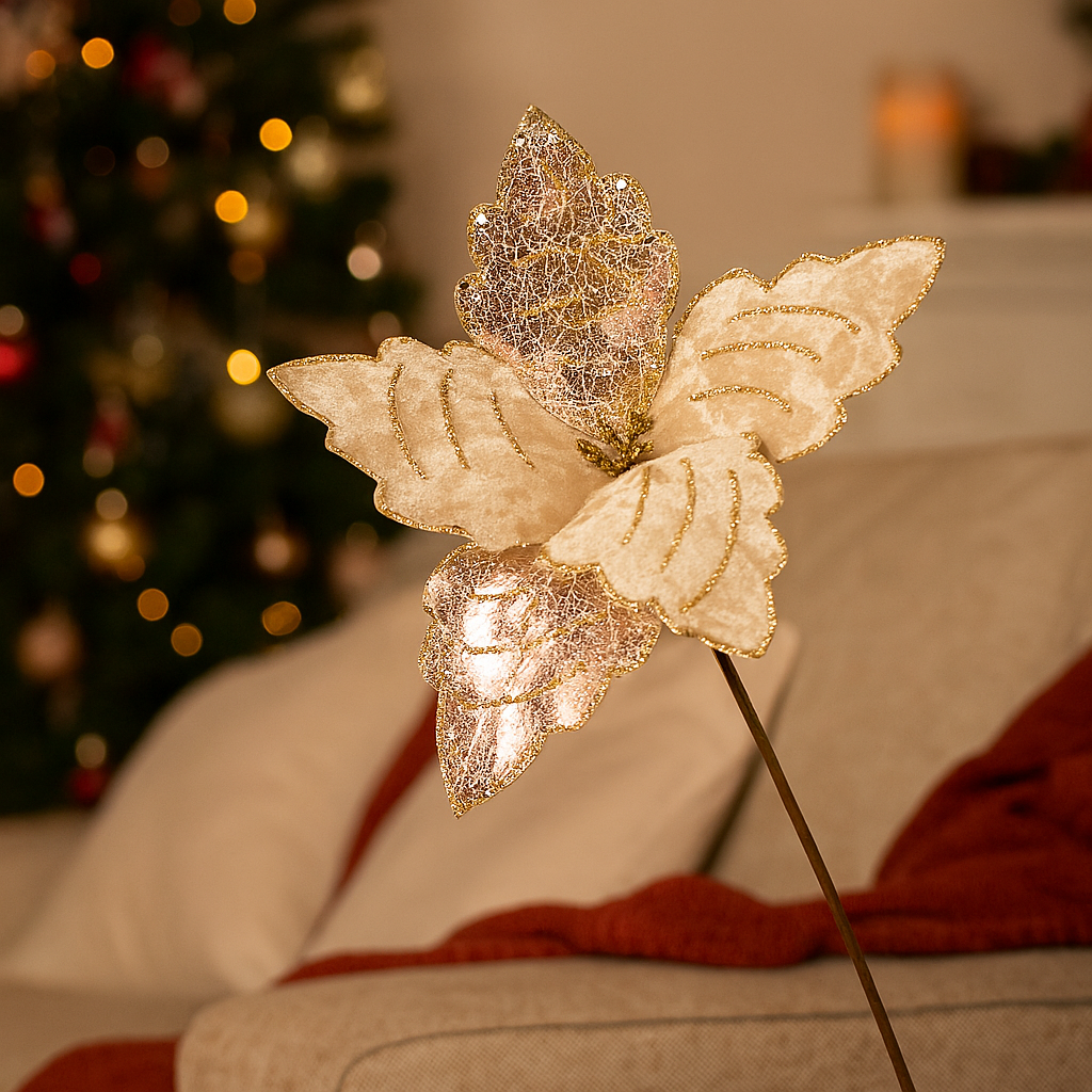 Lo stelo di fiore in paillettes da 40 cm è un raffinato elemento decorativo pensato per aggiungere un tocco di brillante eleganza agli ambienti natalizi.