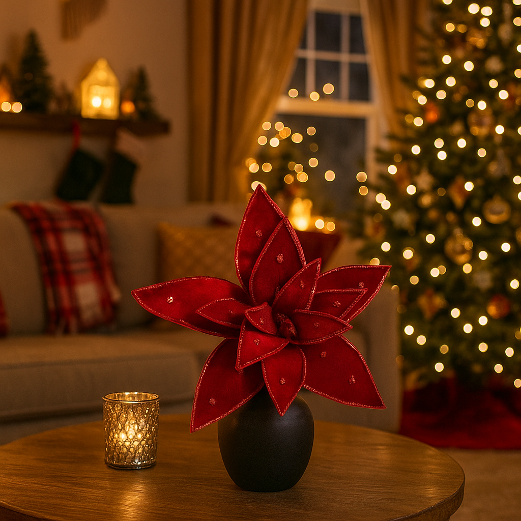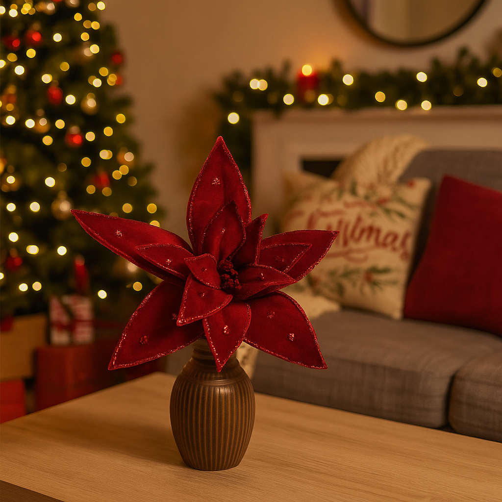 La qualità dei materiali garantisce durata e resistenza, permettendo di riutilizzare il fiore anche per le festività future senza perdere brillantezza o forma.