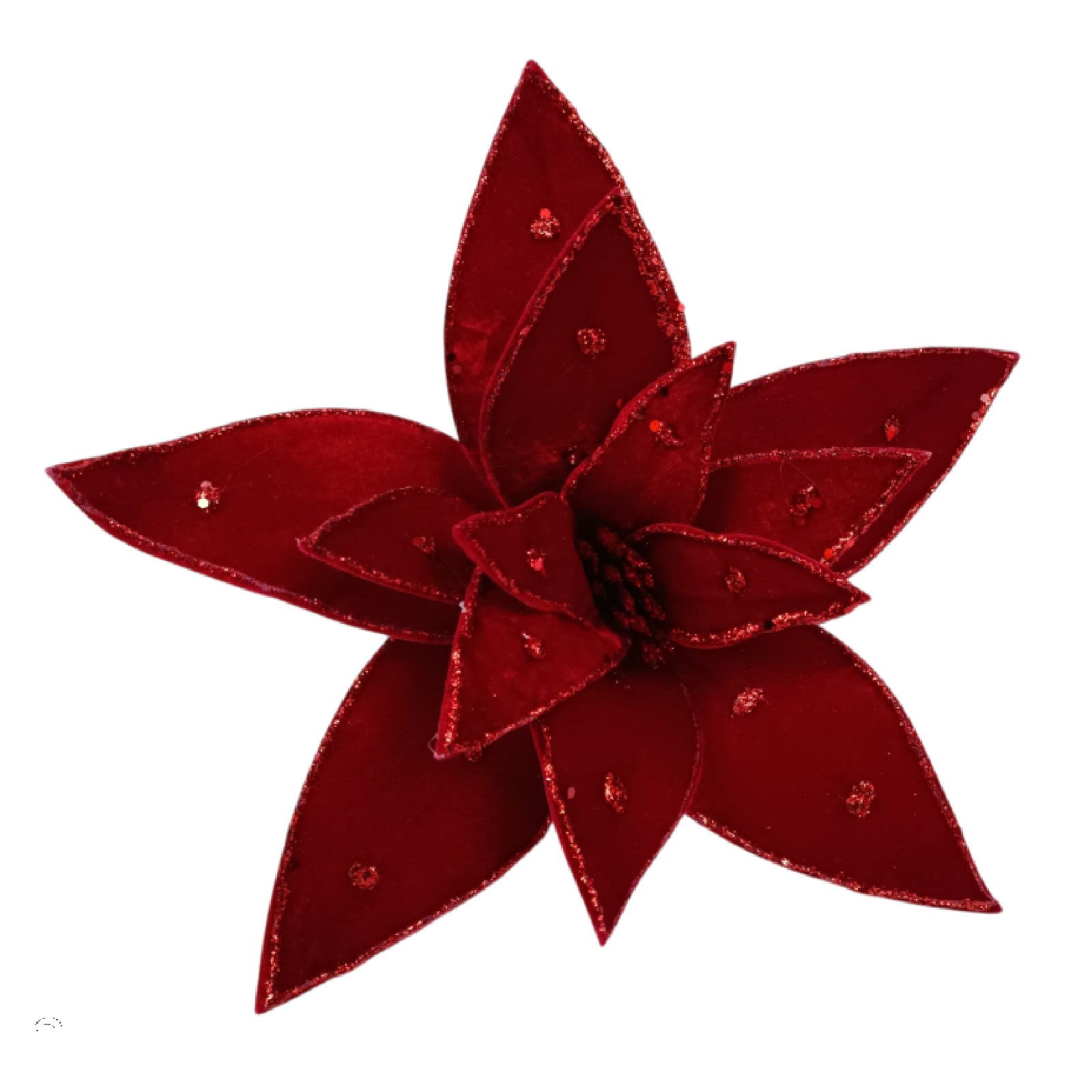 I petali sono arricchiti da un delicato bordo glitterato che cattura la luce creando scintillii discreti ma d’effetto, ideali per esaltare l’atmosfera luminosa delle festività.