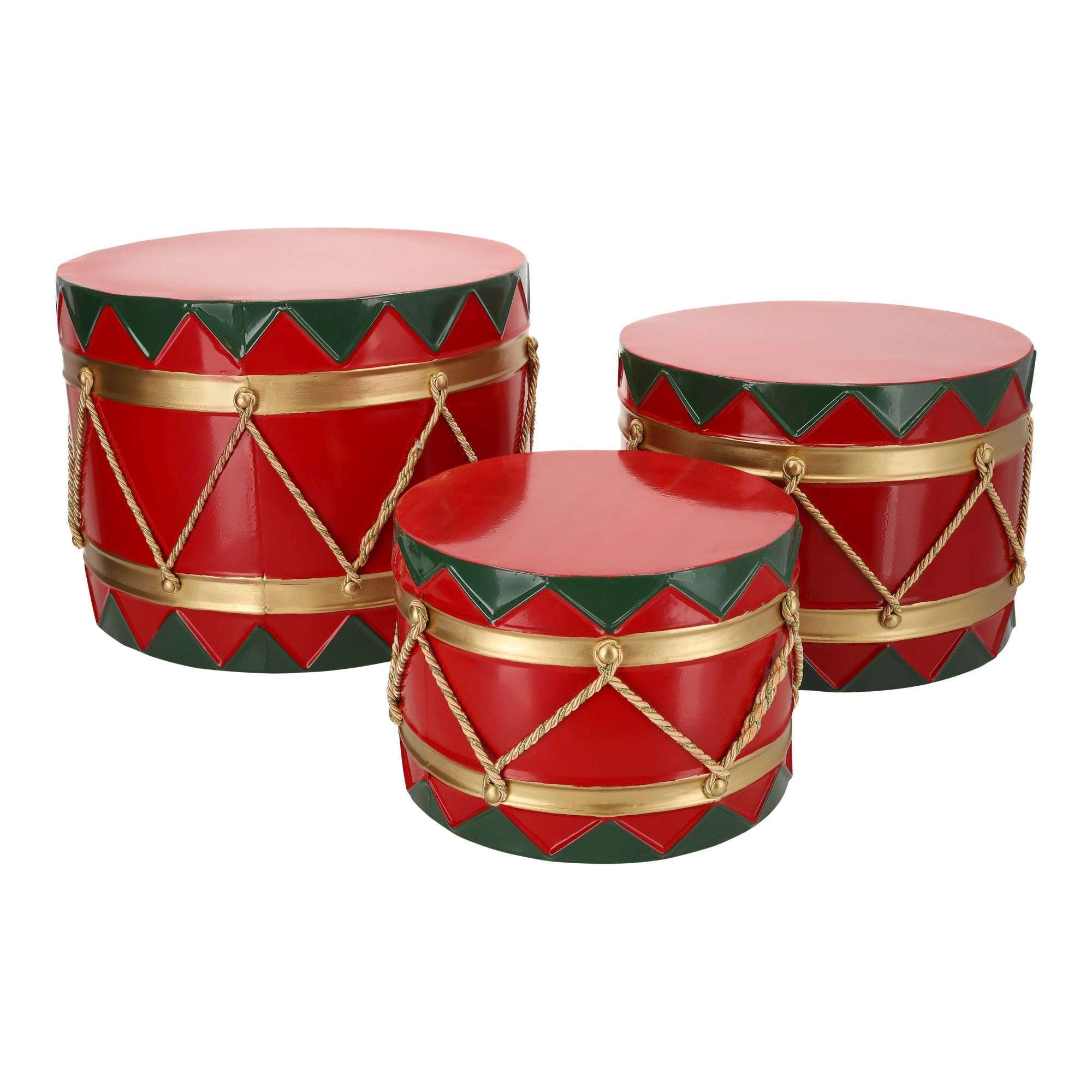 Tamburelli rossi in metallo per decorazioni natalizie da 31,8x26,7x21,6
