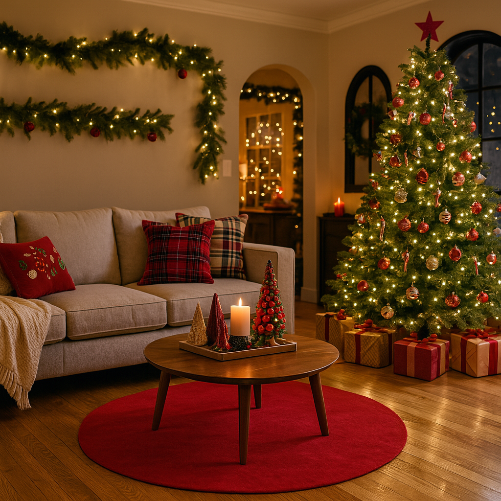 Diametro: circa 1,45 m, perfetto per ampie superfici, sotto l’albero di Natale o come tappeto da soggiorno o esterno