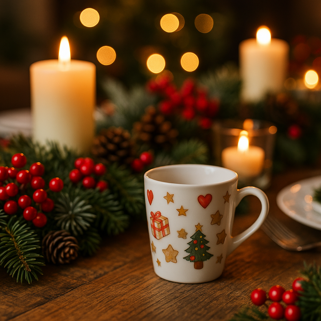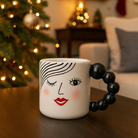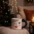 Uniche ed eleganti tazze in ceramica con motivo di una ragazza che fa l'occhiolino.