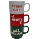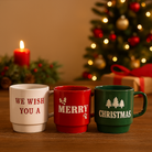 Il punto forte di questo set risiede nella composizione testuale distribuita sulle tre tazze, che insieme formano la frase completa “We wish you a Merry Christmas”, trasformando il gruppo in un messaggio visivo di augurio natalizio.