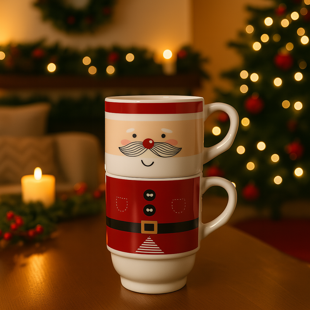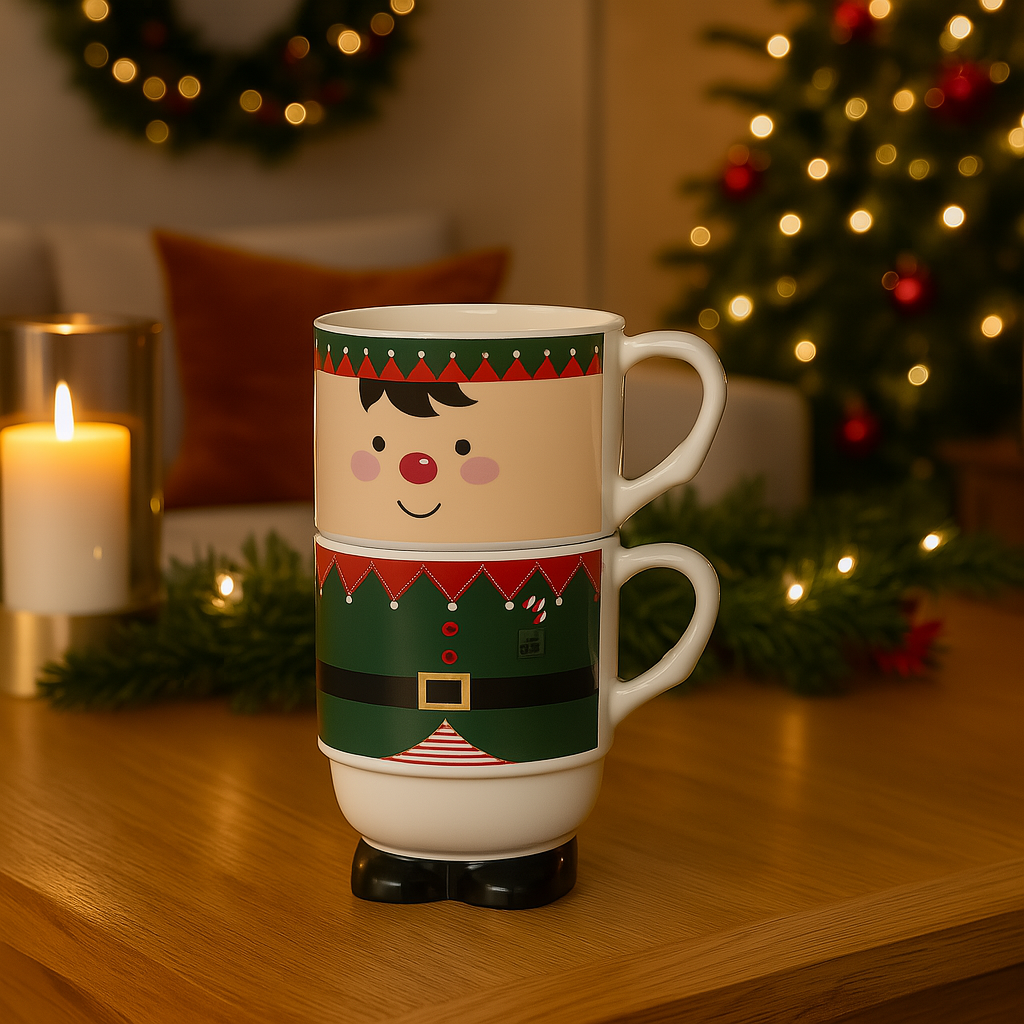 Questo set da 2 tazze in ceramica con decorazione a tema gnomo natalizio unisce funzionalità e spirito festivo. Perfette come complemento decorativo per la cucina, un angolo colazione o da utilizzare come porta-dolcetti, centrotavola o idee regalo. Ogni tazza è realizzata con ceramica resistente e rifinita con dettagli natalizi curati.