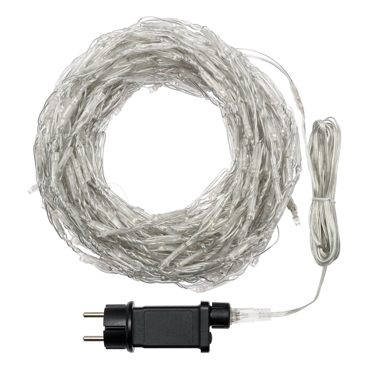 La tenda è dotata di 360 LED bianco caldo di 5mm di diametro, disposti verticalmente lungo un filo trasparente.