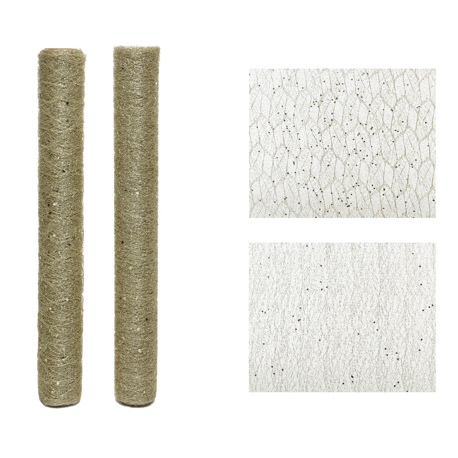La trama retinata conferisce al tessuto una struttura leggera e trasparente, rendendolo perfetto per decorazioni come alberi di Natale, ghirlande, corone e centrotavola.