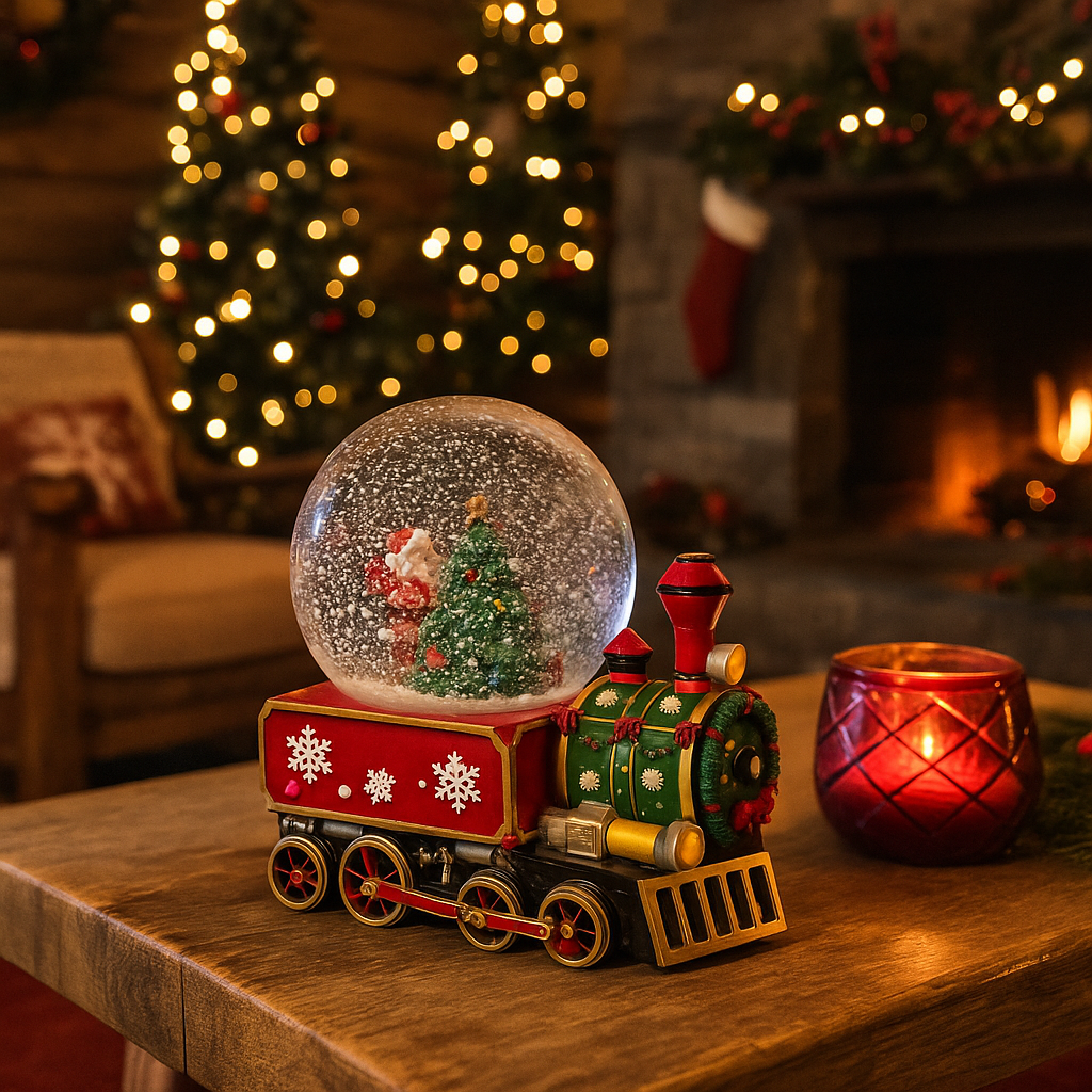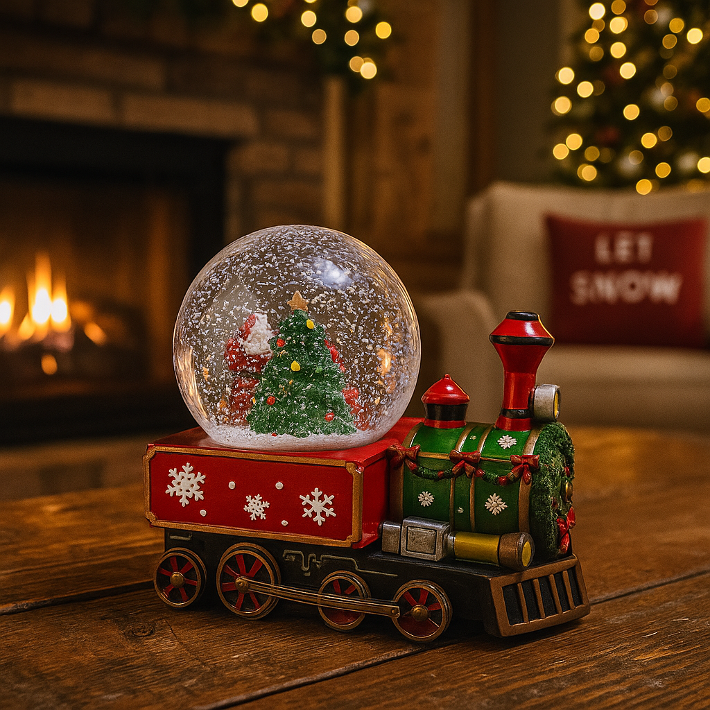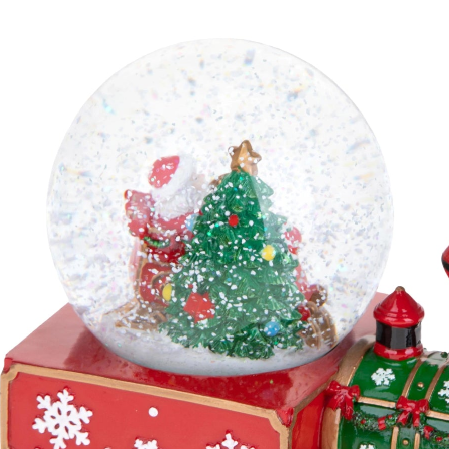 La locomotiva e i tre vagoni che compongono il trenino sono decorati con cura, spesso dipinti a mano in colori vivaci tipici del Natale come il rosso, il verde e il bianco.
