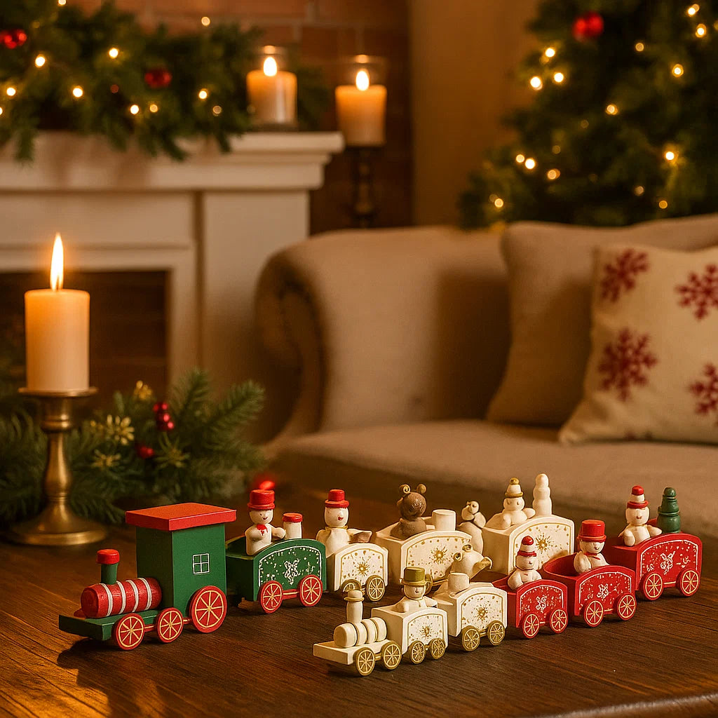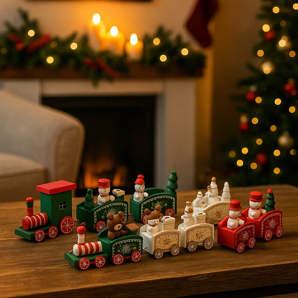Trenino decorativo natalizio con 3 vagoni in legno per decorazioni natalizie