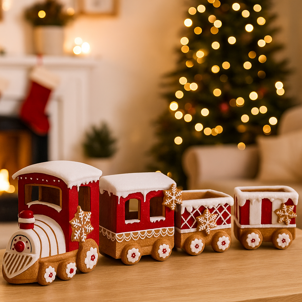 - Aggiungi un tocco di gioia e divertimento alla tua decorazione con questo trenino colorato e accattivante.