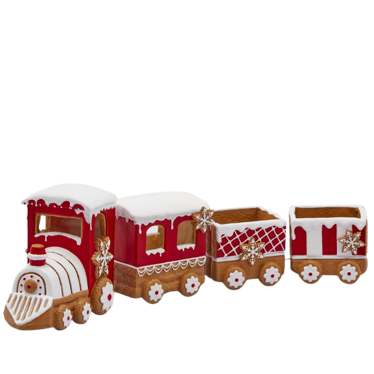 Trenino in poliresina con 4 vagoni, decorazione rossa e bianca da 69 x h 14 cm