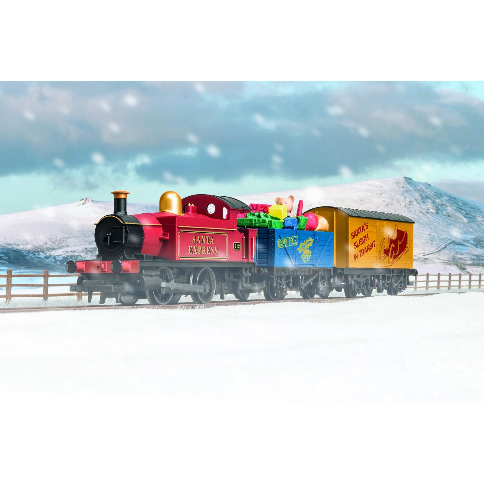 - 1 Locomotiva con marchio Santa's Express + 3 vagoni
