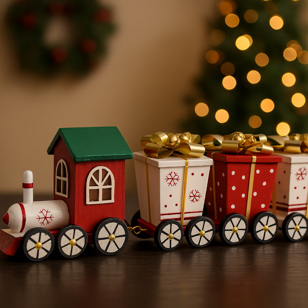 Realizzato con cura artigianale, si compone tipicamente di una piccola locomotiva e di alcuni vagoni collegati tra loro da sottili ganci o catenelle, che scorrono lungo una linea armoniosa dando l’impressione di un convoglio in marcia verso un Natale ricco di doni.