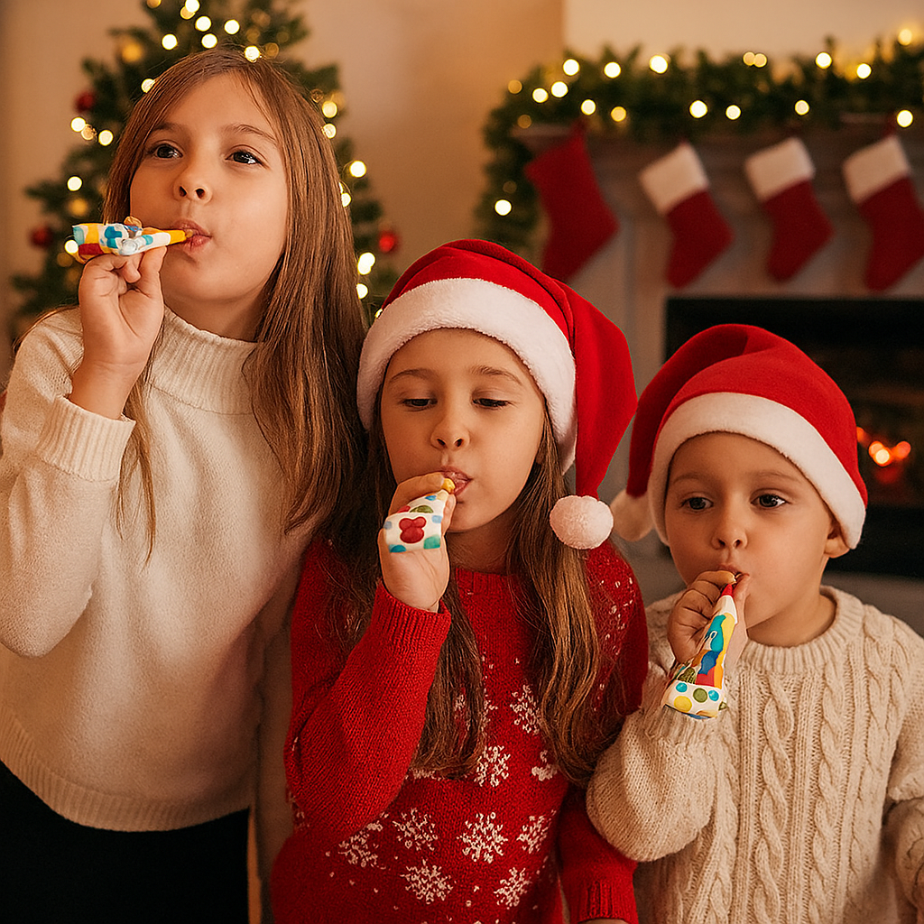 Si tratta di un set composto da tre trombette di diversi colori e design, che possono essere utilizzate per celebrare l'arrivo dell'anno nuovo o per creare un'atmosfera gioiosa durante una festa.