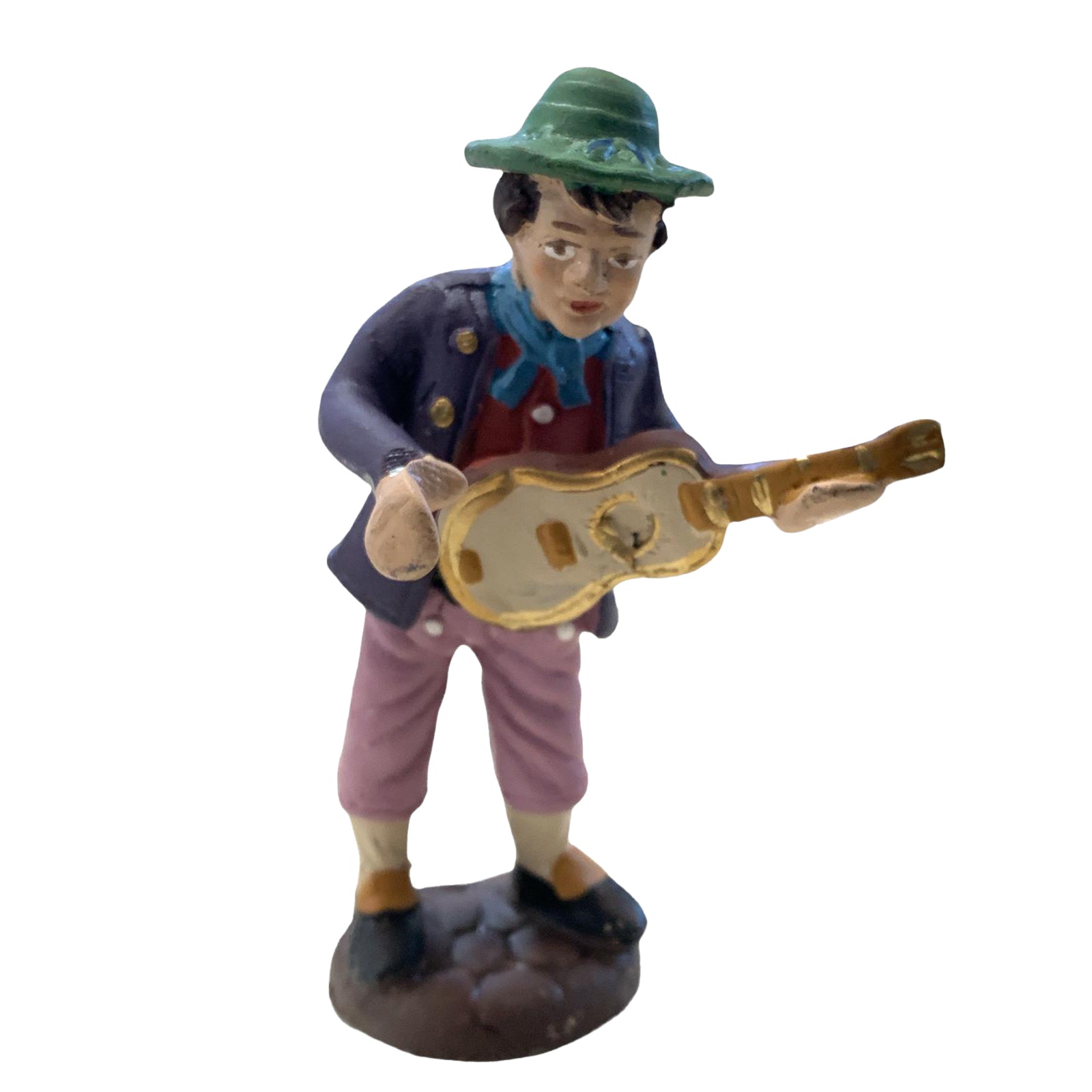 Uomo con chitarra statuetta in terracotta artigianale per presepe napoletano da h 10 cm