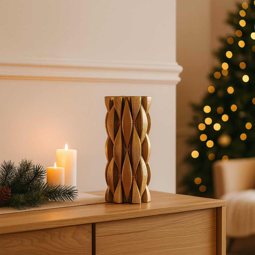 Porta un tocco di eleganza sofisticata nelle tue decorazioni natalizie con questo splendido vaso dorato intrecciato.