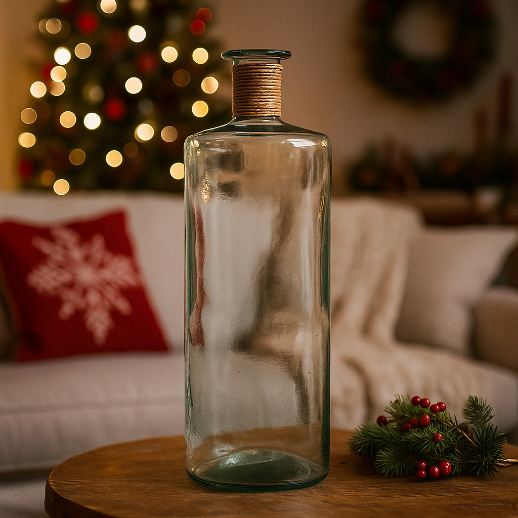 La trasparenza del vetro permette di vedere chiaramente il contenuto del vaso, aggiungendo un tocco di eleganza e semplicità all'ambiente circostante.