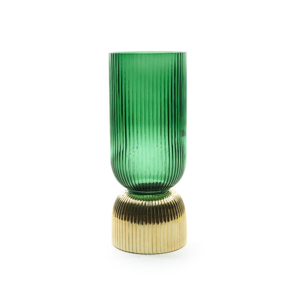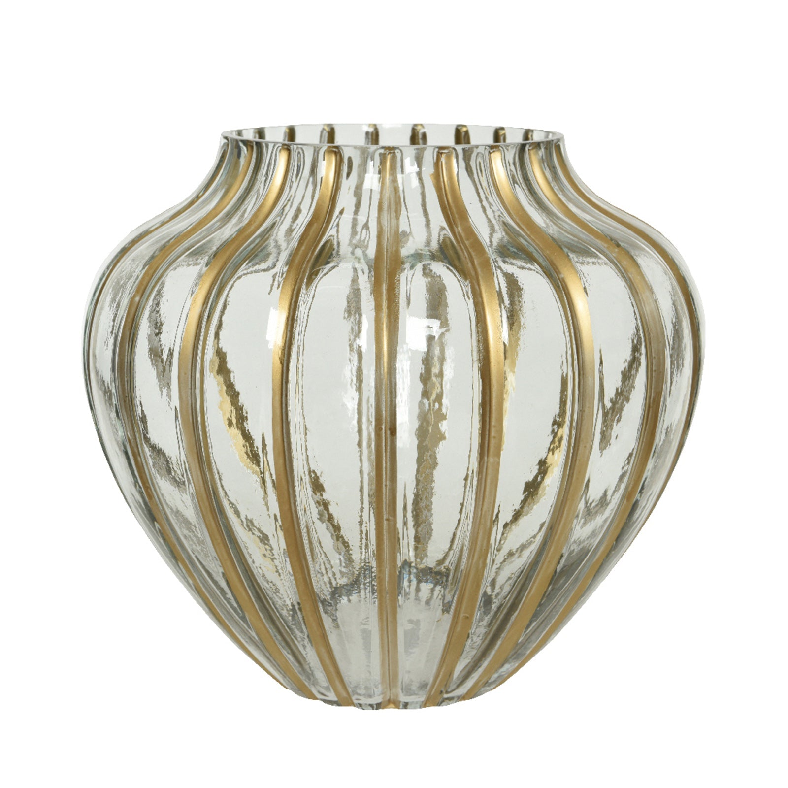 Il prodotto descritto è un vaso in vetro trasparente che si caratterizza per la sua forma sferica.