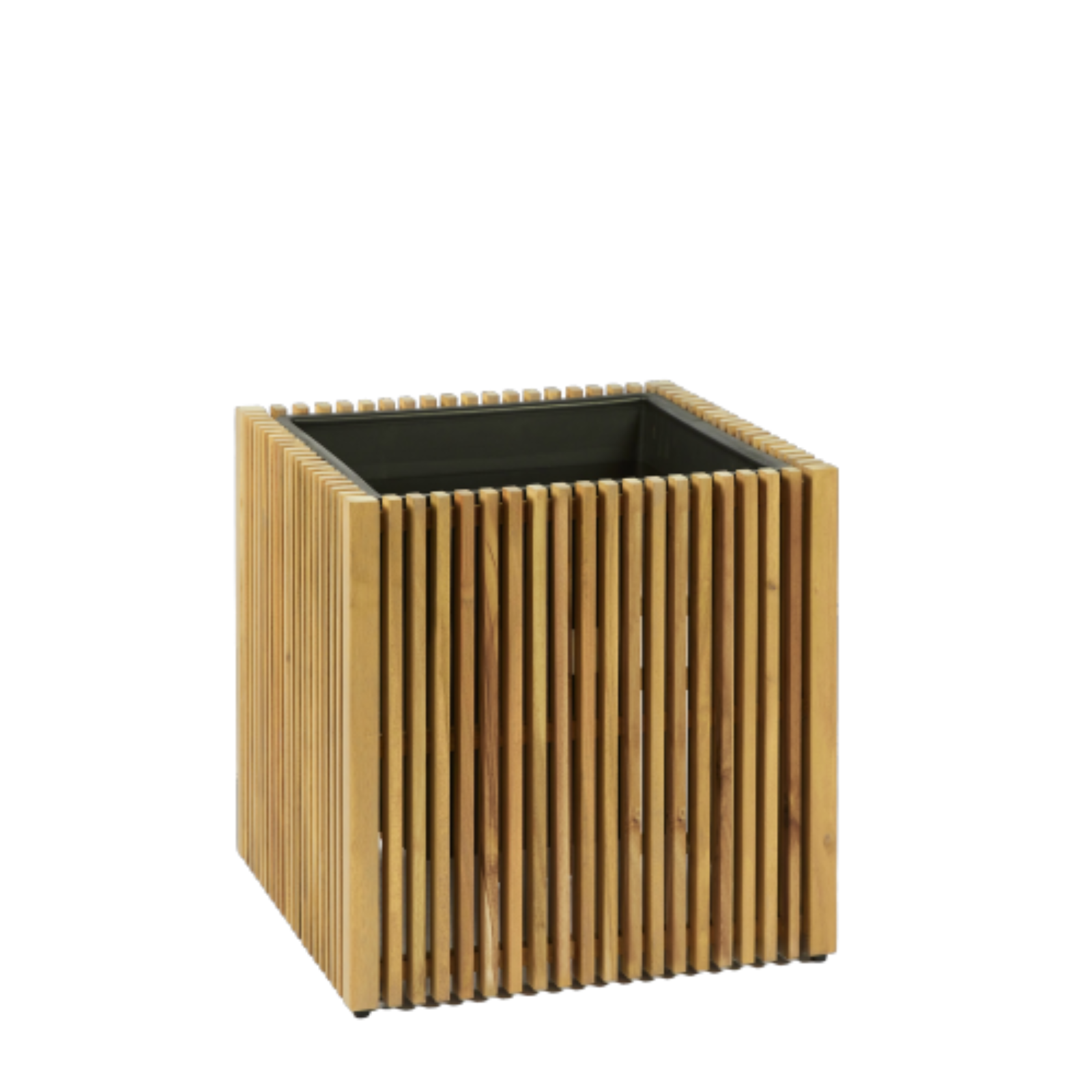 Vaso quadrato in listelli di legno marrone altezza 50 cm