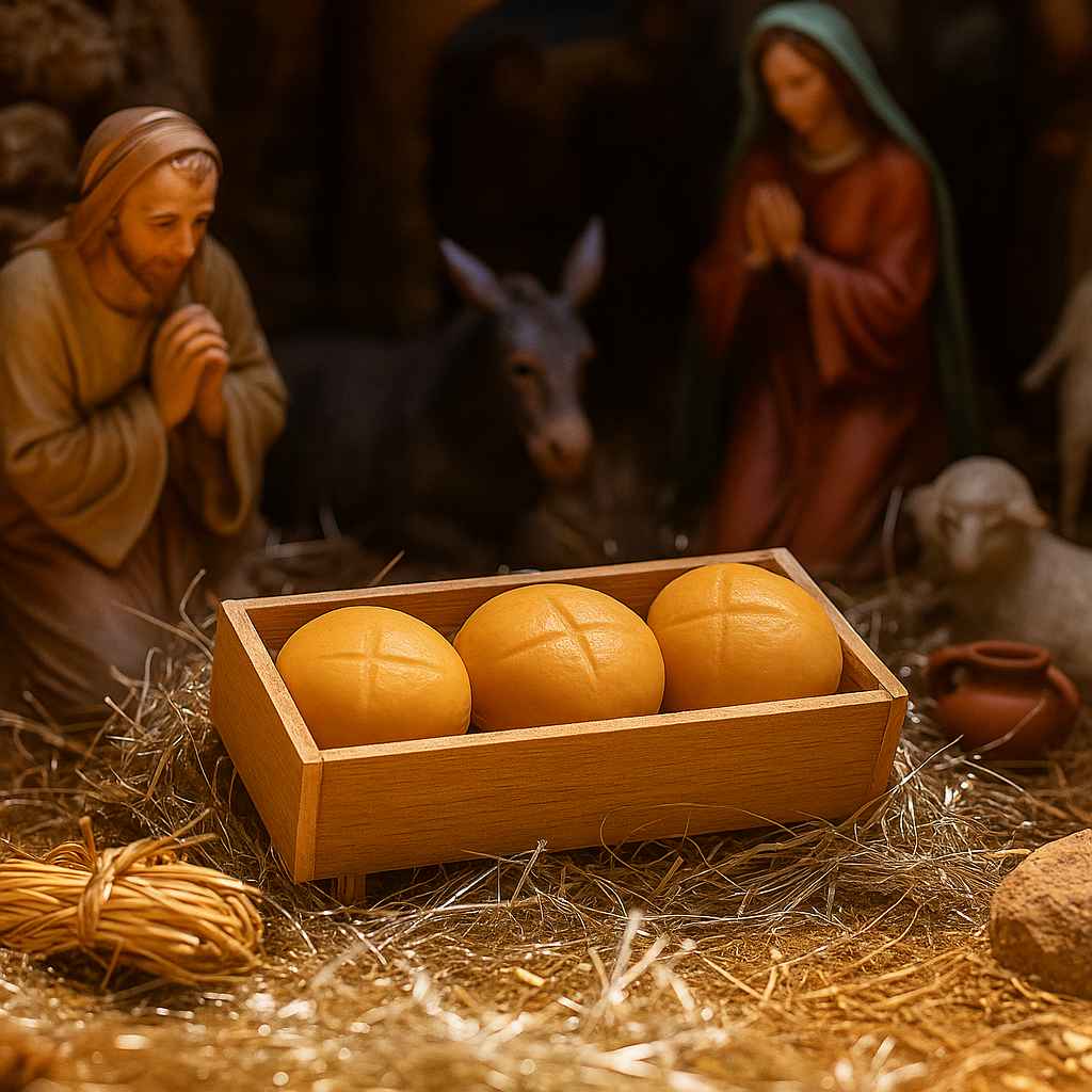 Arricchisci la scena del tuo presepe con un dettaglio autentico e ricco di fascino: il vassoio con pane in legno per il panettiere.