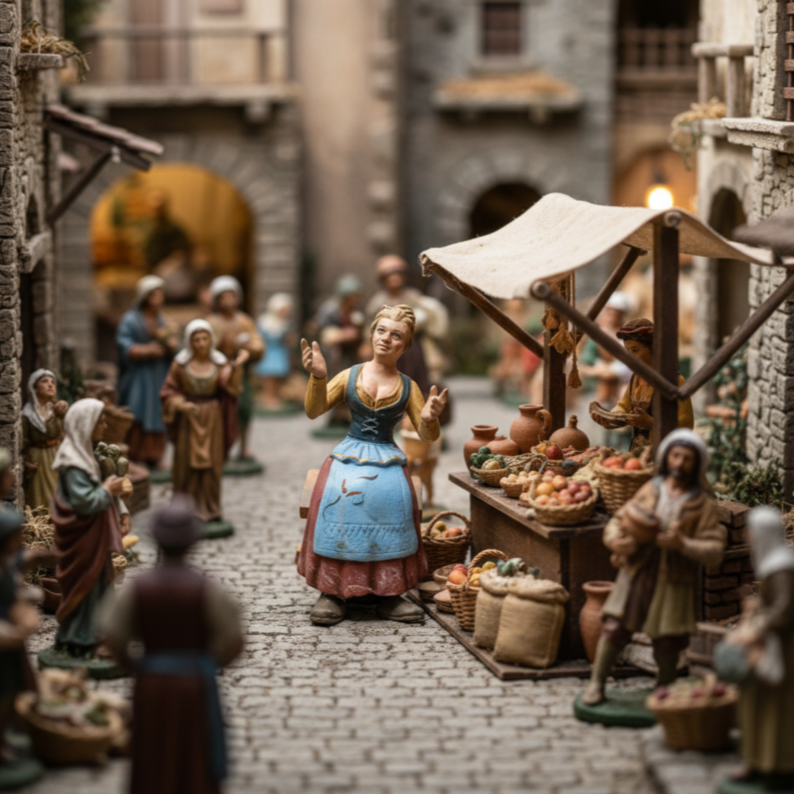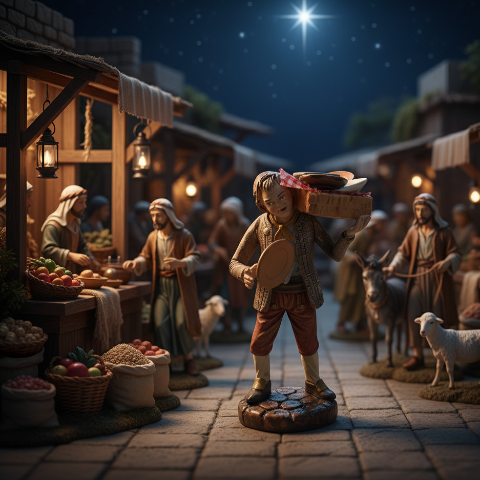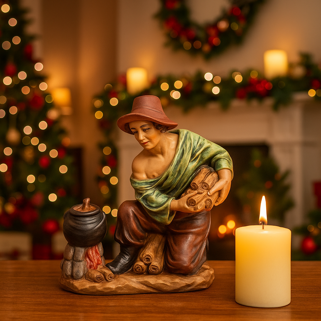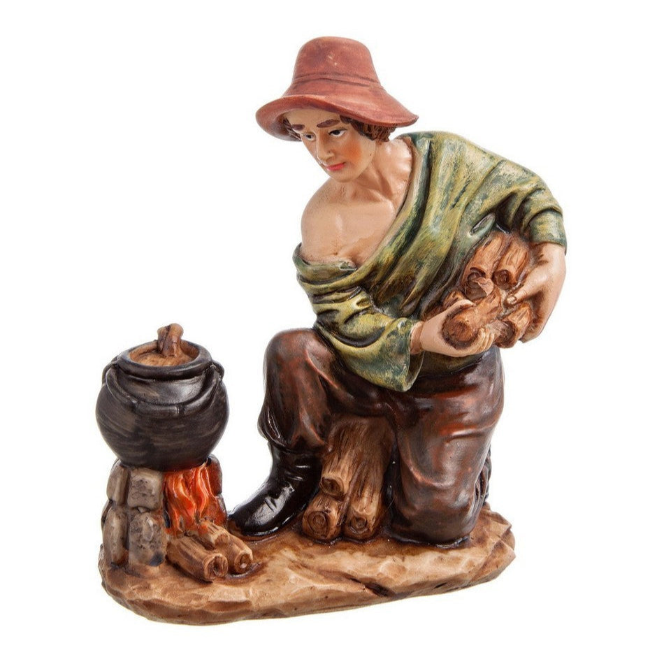 Viandante intento a cucinare in resina ideali per decorare il vostro presepe, le statuine raffigurano diverse tipologie di pastori ognuno diverso dall'altro con in mano oggetti o animali