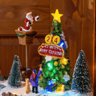 Villaggio di Natale, Albero e Babbo che lo decora in movimento, h 22 cm