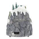 Villaggio di Natale in poliresina raffigurante un paesaggio innevato, situato su una collina imbiancata.