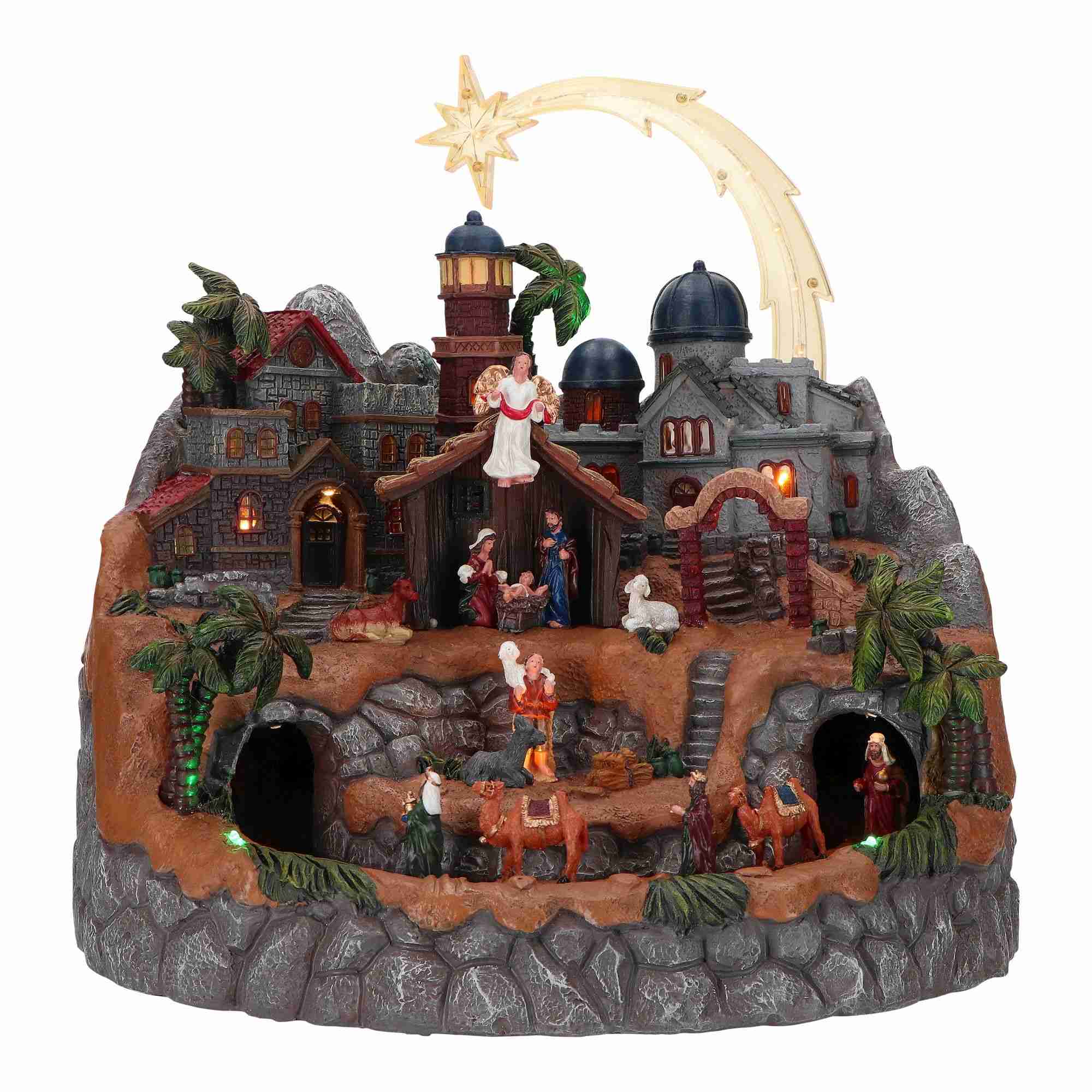 Villaggio natalizio animato con casette e stella cometa da 40x39x40