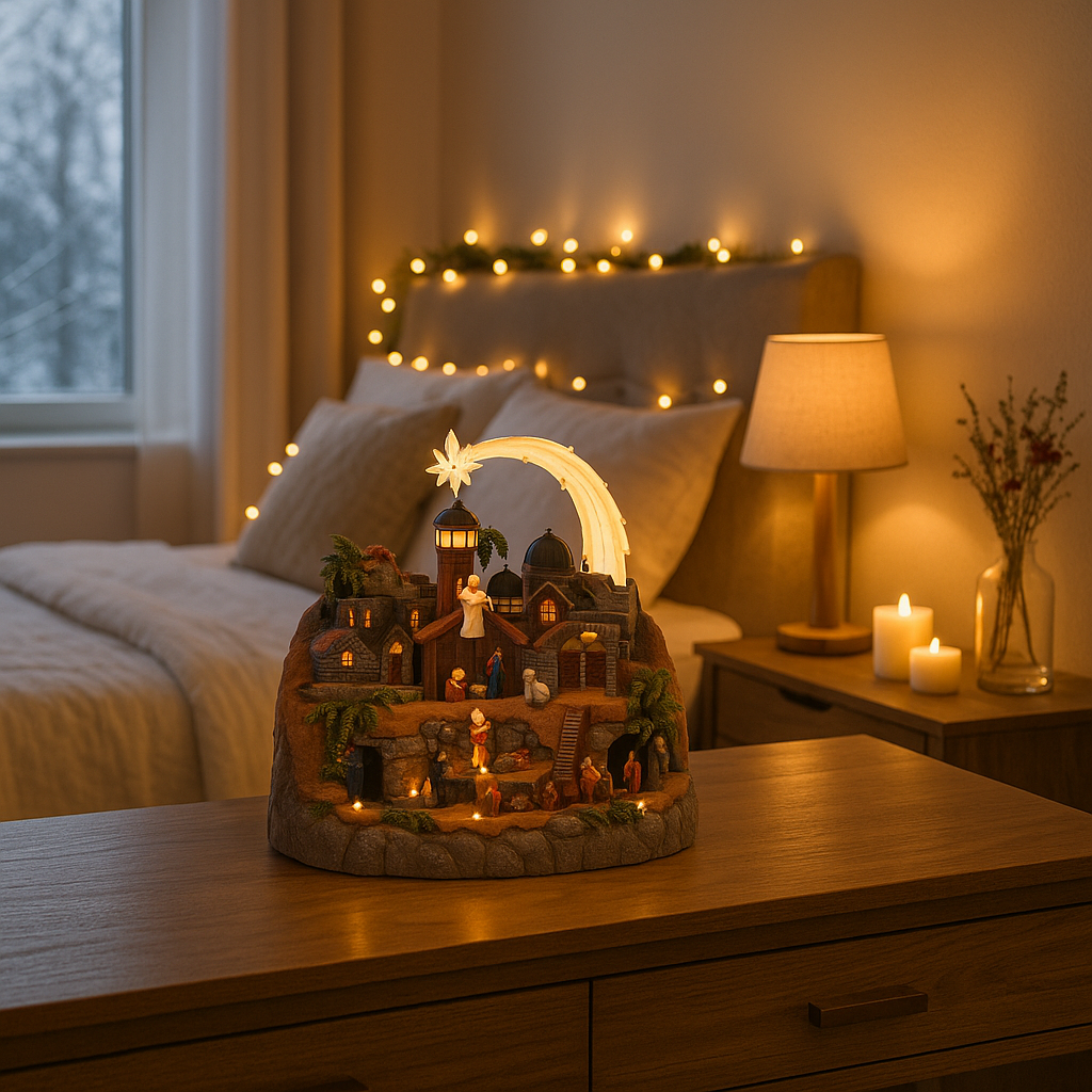 Con le sue dimensioni importanti e i dettagli finemente curati, crea un piccolo mondo fiabesco che cattura lo sguardo e trasmette un’atmosfera calda e accogliente, tipica del periodo natalizio.
