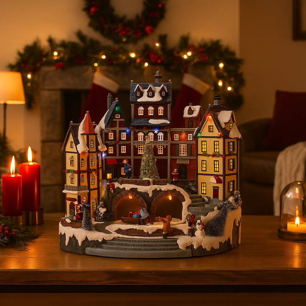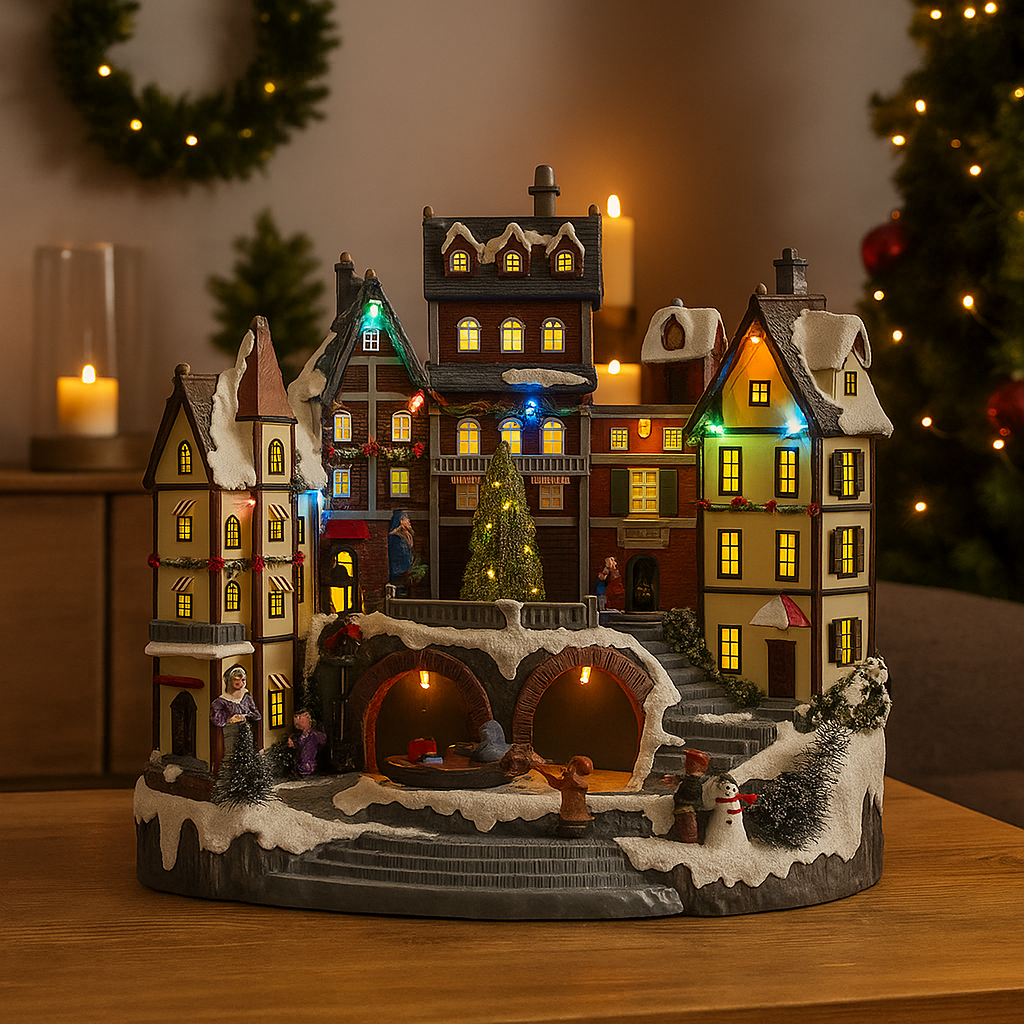 Villaggio natalizio con adattatore e luci Led per decorazioni natalizie